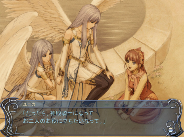 不过官方钦定的正史托尔路线虽然也是老梗,但和女神的苦恋以及雨果之间的兄弟交流,同时也随着进度慢慢带出的往事回忆,再搭配上F社拿手的音乐和CG,加上结尾面对历史之壁——双子女神封印自己和黑珍珠的那声凄厉呐喊,都让人颇有感触。