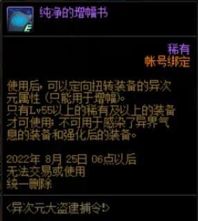 对角色的作用与纯净的增幅书相同,但是需要装备自带气息,且赋予的属性是随机的。所以它的兑换顺序在纯净的增幅书之后。