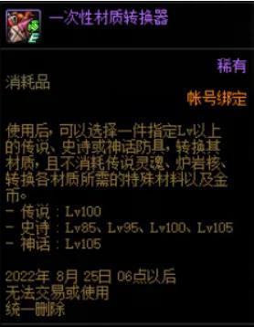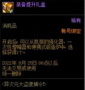 同样是装备提升类道具。对于大号的作用是产生坯子装备,小号身上红字不全也可以直接拿来使用,兑换优先级在增幅券之后。如果没有上面这2种需求则可以把它留到最后兑换。