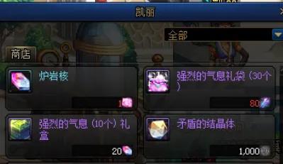 强烈的气息除了可以在公会商店一周兑换400个外,在凯丽处也可以用炉岩核以1:2的比例来兑换(堇青石也可以兑换,但是不划算)。所以说在装备提升礼盒内选择锻造炉是最亏本的买卖。