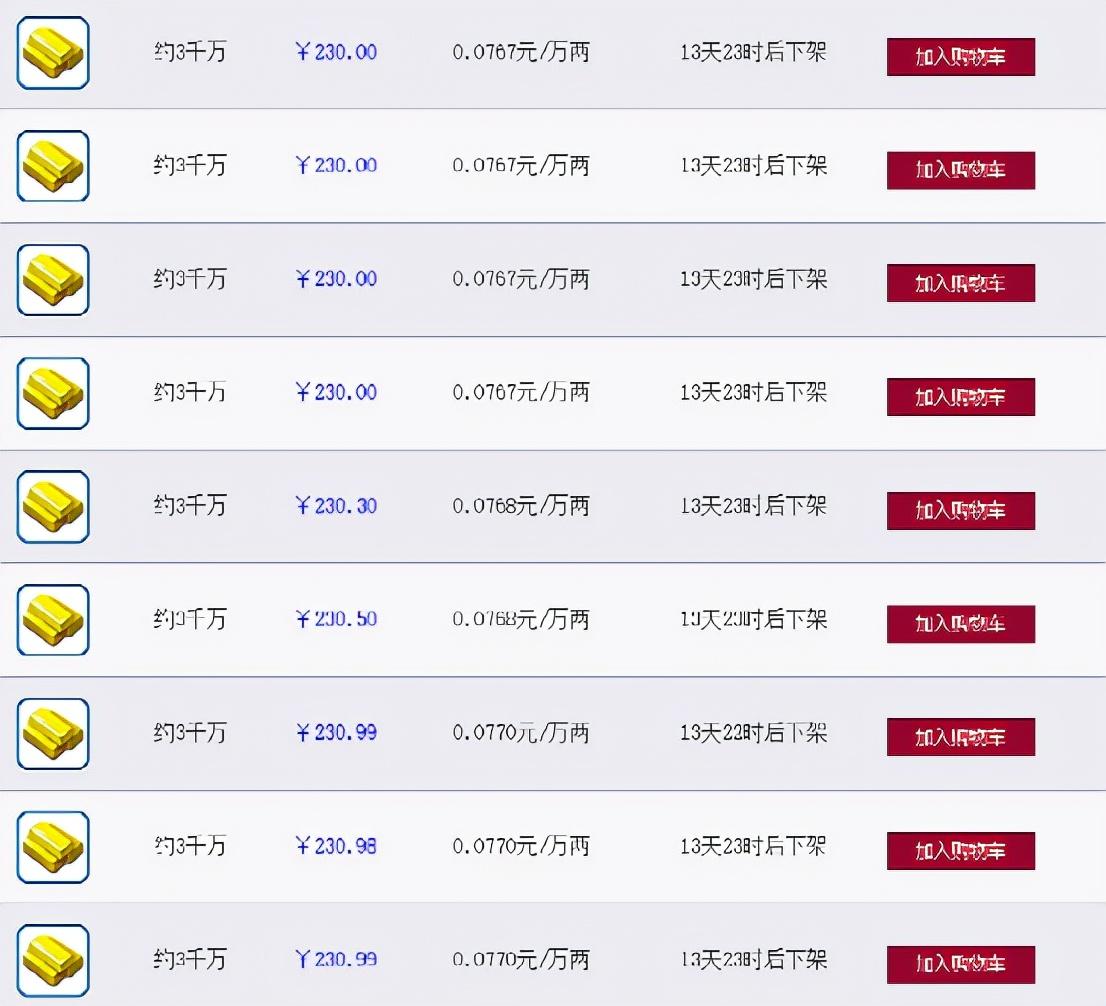 超凡入圣区内金币价售价处于全服平均水平,3000W寄售价约为230元。