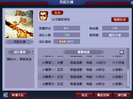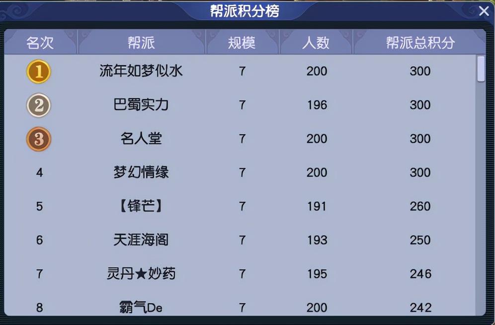 现超凡入圣区内帮派竞赛正在火热进行中,占据前四名的帮派分别是“流年如梦似水”、“巴蜀实力”、“名人堂”、“梦幻情缘”等,就目前的帮战格局来看,超凡入圣帮派竞赛环境颇为不错。