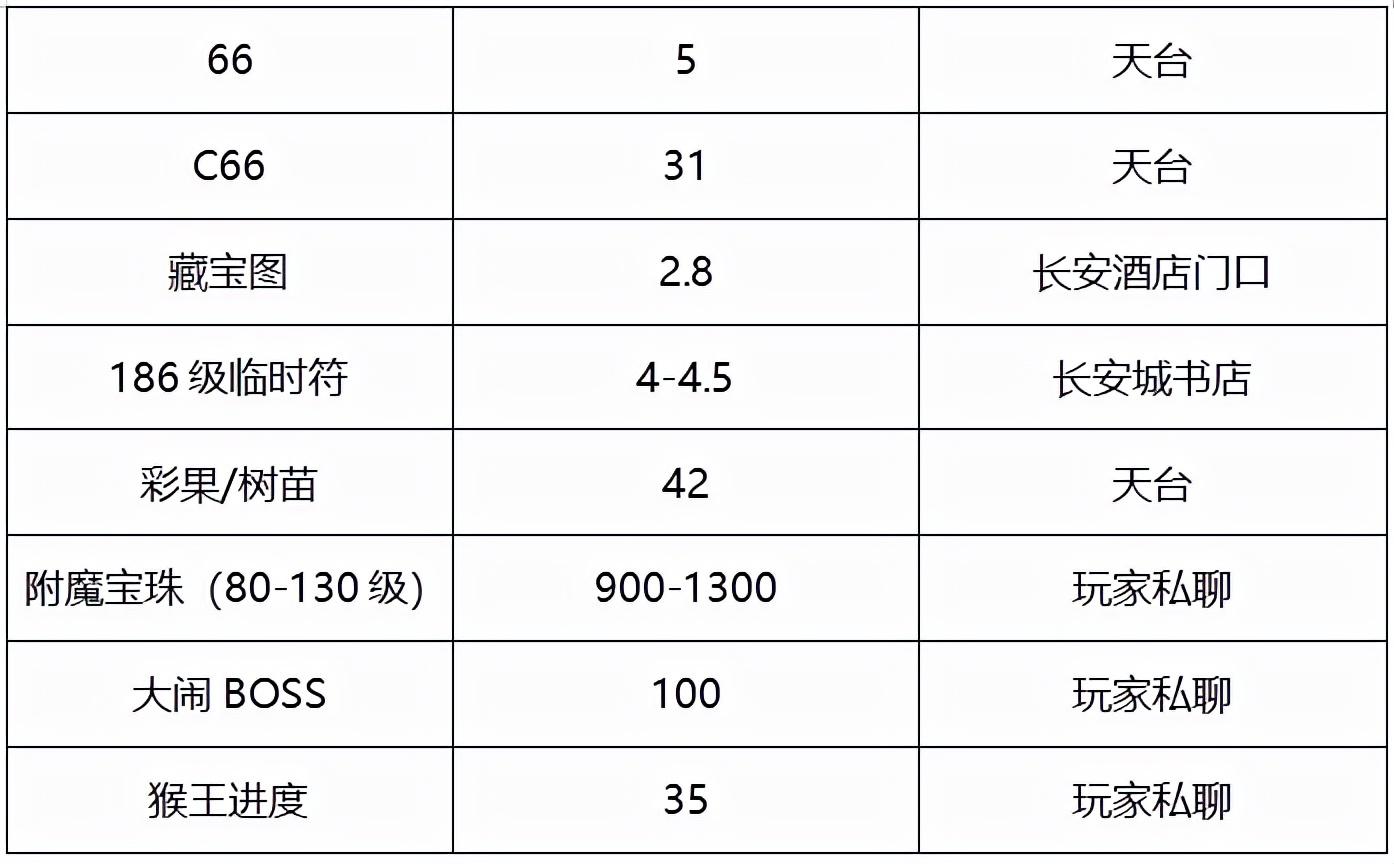 从上表可以看出,超凡入圣大部分收购都在天台完成,区内临时符价格十分便宜,大部分日常产出物品的收购价都不低,副本合作也十分便利,再加个便宜的点卡和较高的金币寄售价,游戏环境相对不错。