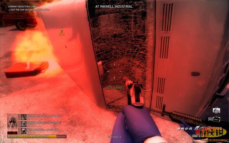 2:来到MATT翻车的地方(前面警察设置了障碍,MATT跑不过去),发现MATT躲在面包车不出来;按照提示在周围找到3瓶汽油,在面包车周围烧起来,逼迫MATT出来,期间守住面包车。