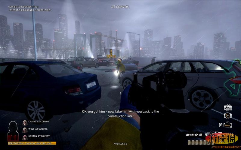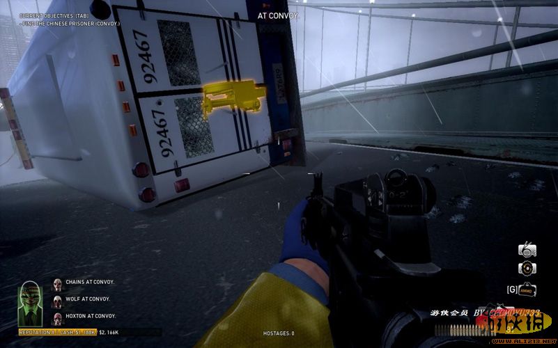 2:四辆车都开门后走到囚犯边上按F键说话,找出目标人物;一旦找出,再按F键让他快走,你们一路上跟着他走。路上敌人很多,这里最容易死的是你,你的队友比你给力,囚犯是无敌的,只需他在不走时你上去F他,所以保护好自己。