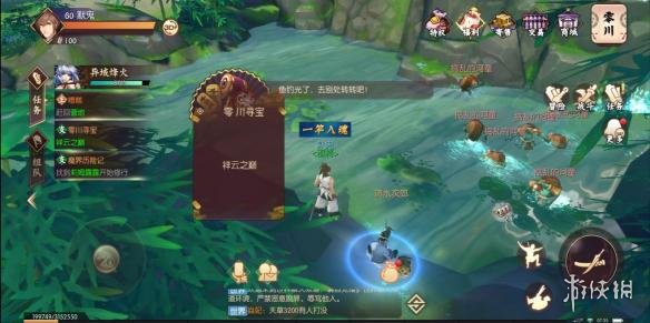 比如说这个零川寻宝,祥云之巅,你点开零川地图是看不到有一个叫做祥云之巅的位置的,但从字面上我们可以找到些许的提示,这个词怎么看都不可能在很低的地方,因此,你就需要在零川找各种比较高的地方,然后跳上去。