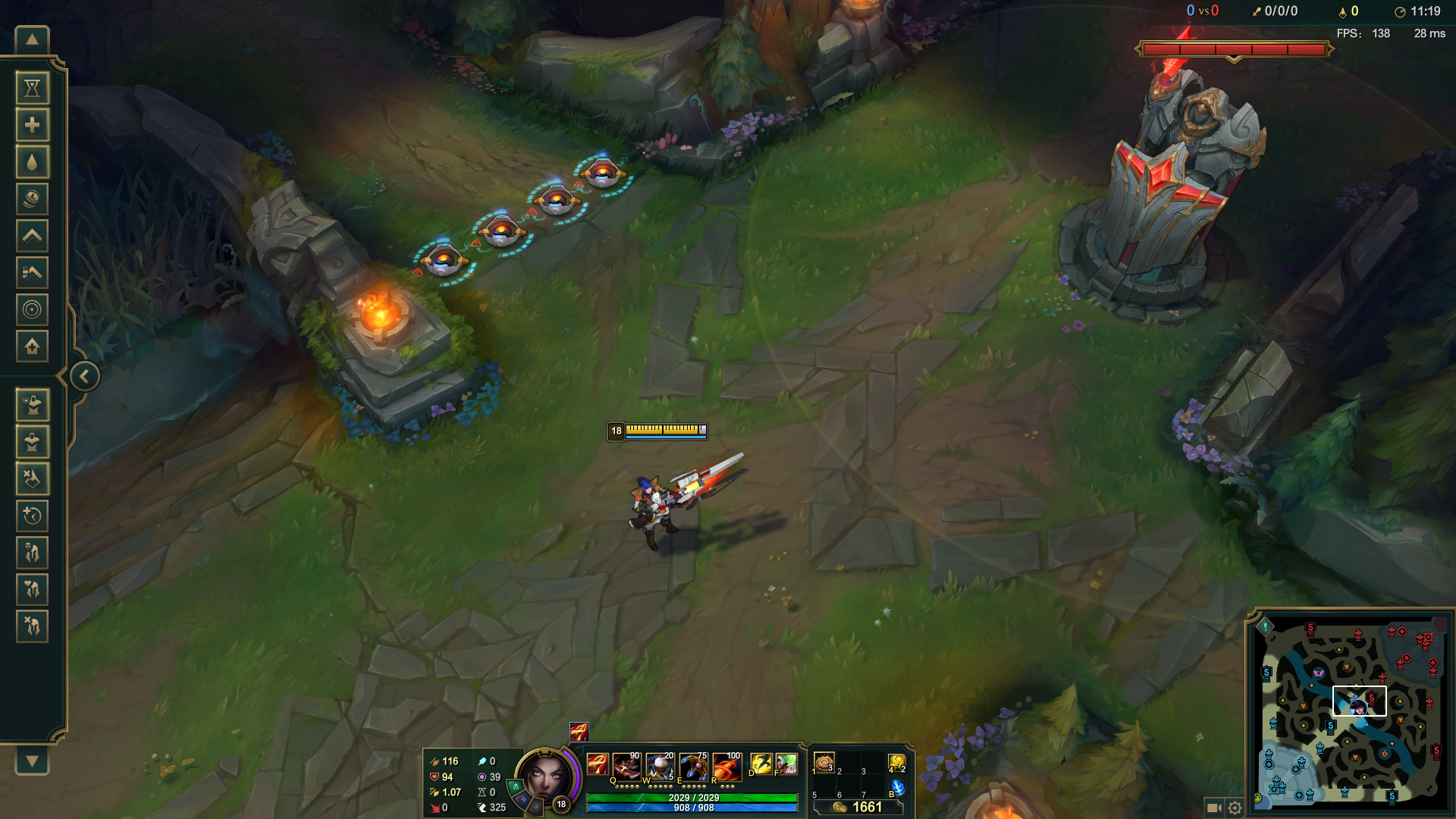 W:这个很有学问,线上最为实用的是对面塔下的这个看不见的夹子,铂金以下的下路对于这个架子的防范可能都不是很强。但是对于段位高一些的下路就会对这个夹子很小心,那有没有办法能让对面看不出来这个夹子的摆放呢?答案是有的。可以通过aw,ew,wq/qw等技巧来掩盖w的抬手,同时也可以掩盖一部分声音,对面很难发现。另外一个需要注意的点是这个夹子很多人踩到后a不出来,原因是这个人踩到夹子的位置刚好是被塔的模型挡住的,所以这个夹子有时候会害人害己 (我a不到啊) 有没有解决办法呢?当然是有的。这时候可以选择a那个人旁边的地板,就会自动攻击那个被禁锢的敌人。或者可以摁住~键(esc下面的波浪键)选定只对敌方英雄进行攻击,这样的话,塔无法选中,就算a到塔也是和a地板一样的道理啦。