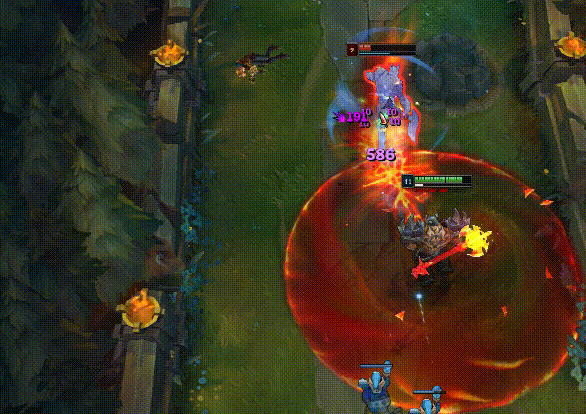 达到6级之后,如果有信心能够击杀对方,就可以E技能拉到,R技能丢出去开始对拼,此时你的属性会更高,而对方也无法逃出你制造的死亡领域,7秒时间足够完成击杀了。