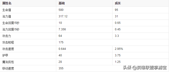 由于技能都是额外AD加成,所以攻击力成长也不是很重要。还有着全联盟最低的基础魔抗28,我佛了。
