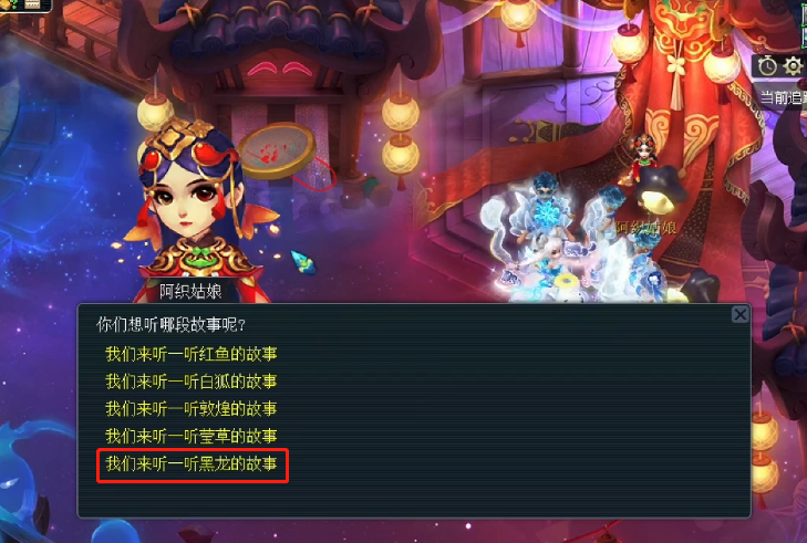 想要开启此副本,首先要拥有一个阿织的信物。除此之外,你还需要几位实力相当的队友。建议:1封、1辅、3输出。之后,在鬼市找到阿织姑娘对话后,选最后一个选项:我们来听一听黑龙的故事。便可进入副本。