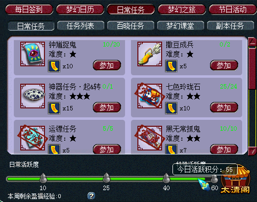 中级回梦丹,每个月关联手机获得一个,北惧封妖也能得,用在周日活动可以额外获得储备金。西游传说,虽然被削了,但是推荐每周做一次西游传说副本,也就十来分钟,给储备金和经验,还有20太清符。