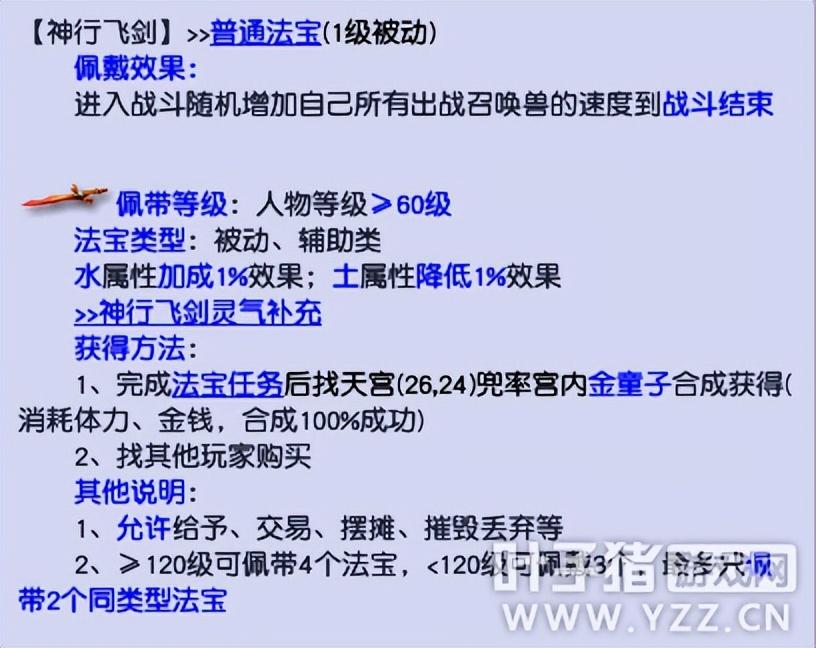 当然,召唤兽方面也可以携带法宝【神行飞剑】来提升,一个满级【神行飞剑】大约可以提升50点速度属性。