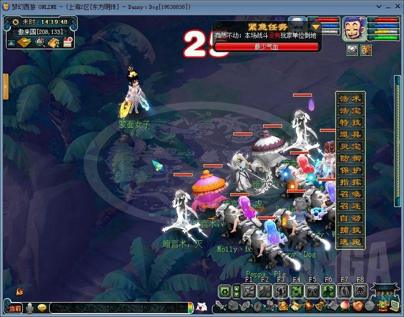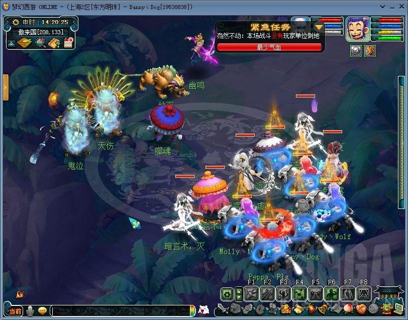 进阶蛟龙为凌波城门派,狂豹为狮驼岭门派,凤凰为魔王门派,进阶龙龟为化生门派。这场战斗怪物伤害较高,血量很厚,且带有神迹。