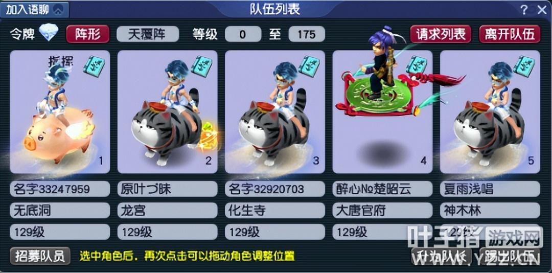 小生的挑战阵容为129级的无底洞、龙宫、化生、大唐和神木,属于双辅助三输出的阵容。修炼基本为21+15,特技携带晶清、水清、罗汉,宝宝全用血攻(仅有大唐打了一张伤害符,其余门派无符)。