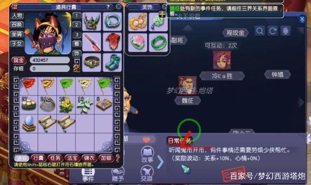 九、与NPC好感度达到500,可以触发特殊任务,简单的听魏征唠叨三个回合,大概30秒钟,然后击杀水花和海浪,重点,水花的法系输出很恐怖,但物抗很弱,优先击杀;