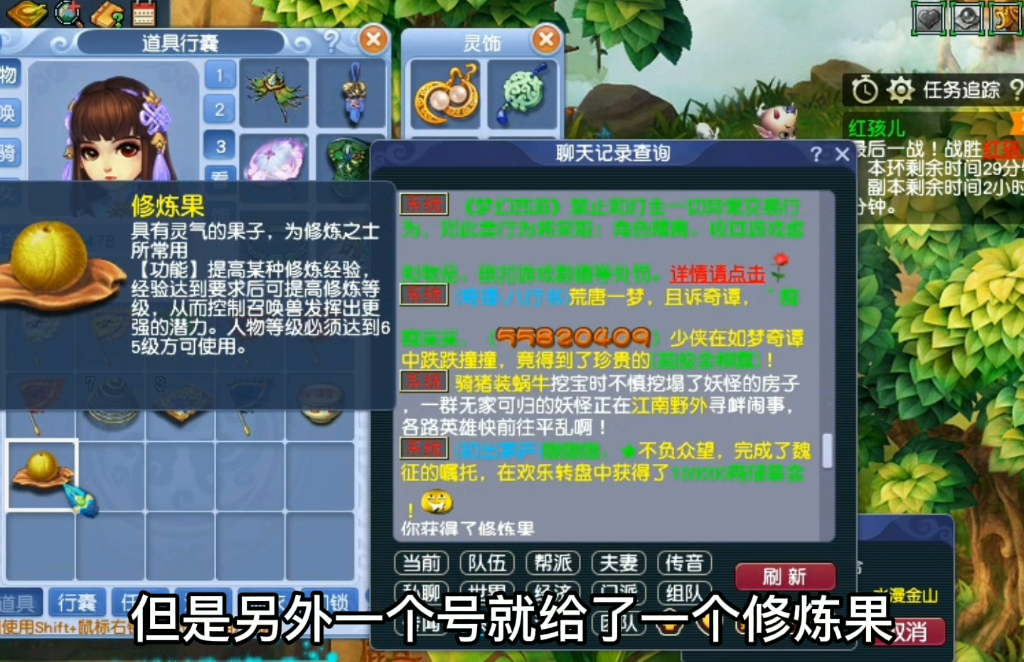 在红孩儿没改之前啊,原来物品都集中在BOSS这里,而改过之后呢,就不一样了,物品奖励大多数都是前面的两个小怪比较丰富,一个是假红孩儿,一个是木吒破阵结束了,所以这个本对于平民来说最适合刷两次了,而修炼果只要你刷两次基本上都是必给的;就出在小怪那里。