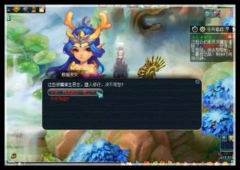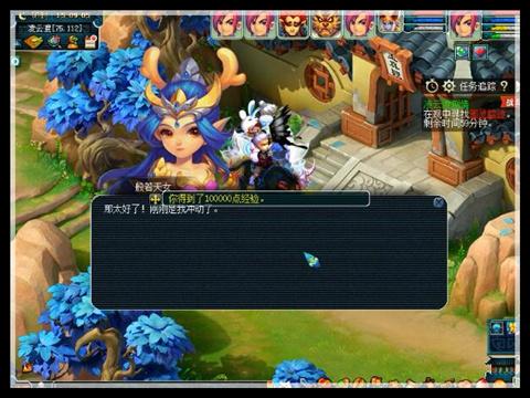 然后在观外(73,107)和般若天女进入战斗,战斗只有般若天女1个怪,天女的血量大概在5W左右,战斗完成后获得10W经验奖励。