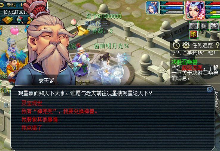 在玩家的印象中袁天罡是一个很梦幻的NPC,因为及其99个神兜兜就可以在他这换取随机一只神兽,这种场景应该在不少玩家的梦中都有出现过。但是这次呢我们并没有神兜兜,只是来向他讨教灵宝现世的相关问题。