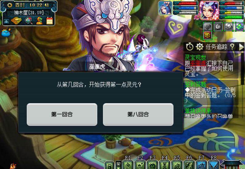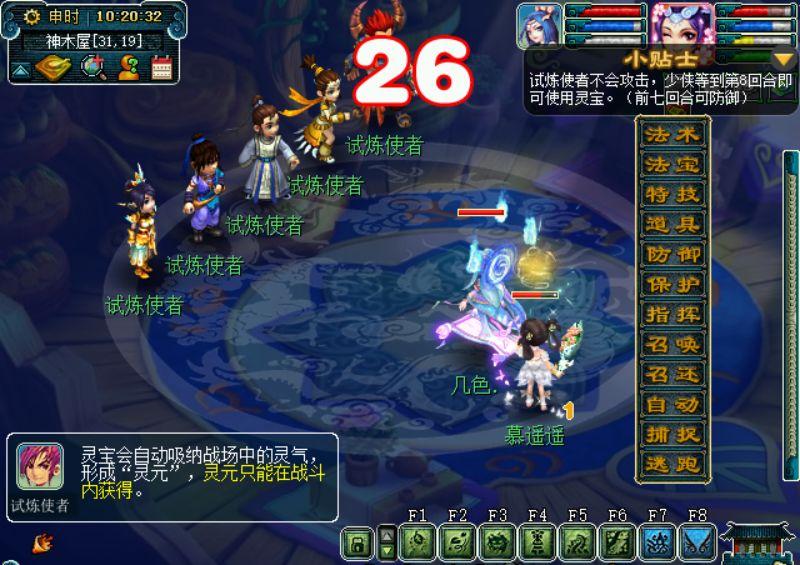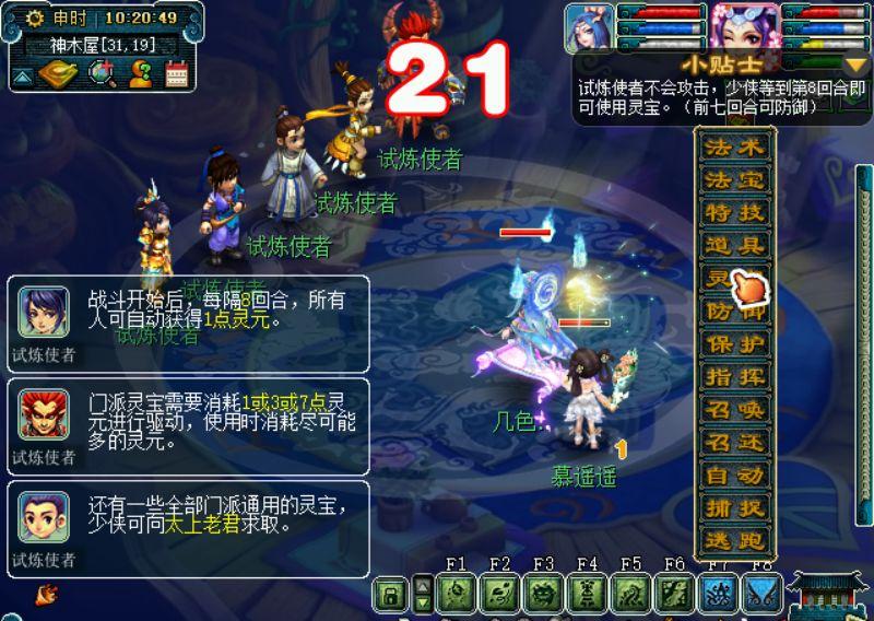 切入战斗后会有个小贴士,告诉我们前7回合防御第8回合使用灵宝就行了。在前7回合中试炼者还会在左侧介绍一些关于灵宝和灵元的基础知识,玩家们可以仔细阅读以下,有助于以后使用。