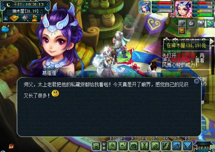参观完太上老君的宝贝又要回去找门派师傅了。就说这俩人累不累,让我们跑来跑去的,天宫好远的说。这回天宫的弟子们有福了,能在自己家地盘做这个任务,其他门派还要跑那么久的地图,羡慕啊!
