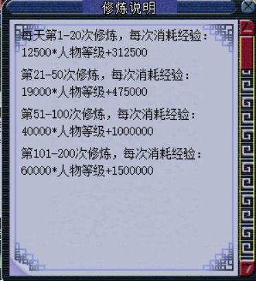 修炼境界和修炼法宝差不多,都是需要消耗比较多经验的,而且每天修炼的经验消耗是阶梯增长的。不过值得庆幸的是没要金币,一切能用经验解决的事儿都不是事儿。
