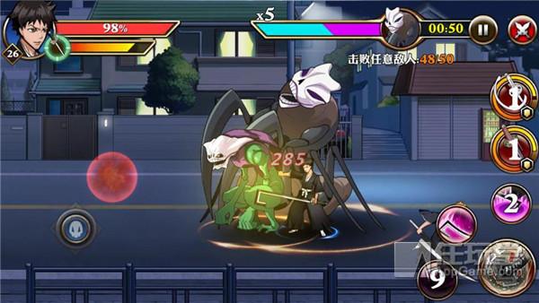 在战斗中,会有两位 NPC 来辅助玩家战斗:黑崎一护和石田雨龙, NPC 的攻击输出并不是很高,但聊胜于无。这里要注意的是,一旦斩魄刀的换刀技发光,就应当把换刀技留给 Boss ,避免伤害的溢出。为了更节省通关的时间,还需要进行“拉怪”和“判断技能切入点”,当怪物非常分散时,玩家应当围绕怪物跑动,将怪物吸引到一起之后再进行攻击,争取每个技能都能命中多个敌人,这样就可以大大提升杀敌的效率。
