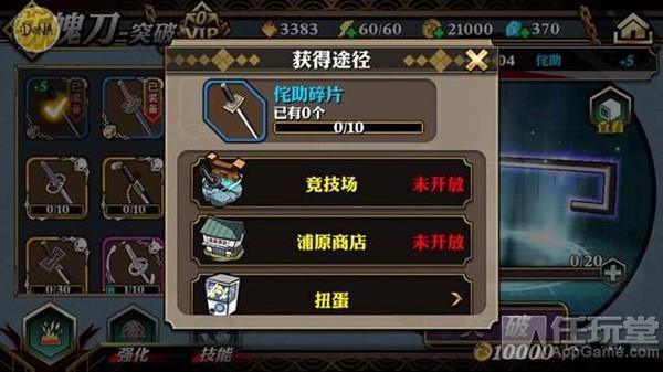 玩家一进入游戏就可以获取侘助,为了提升斩魄刀的战力属性,我们需要对侘助进行突破。然而突破需要消耗相同斩魄刀的碎片,侘助的碎片可以通过精英副本、浦原商店、扭蛋、竞技场商城等多个途径获得。作为一把蓝色品质的斩魄刀,当你把侘助突破到 3 星的时候,侘助的属性已经相当于一把 1 星紫刀的属性了。因此在前期用心培养侘助也是个不错的选择。