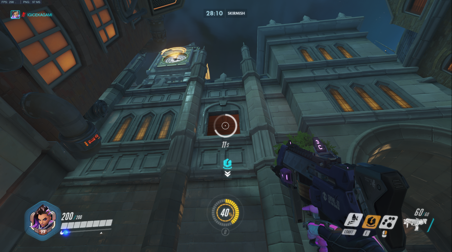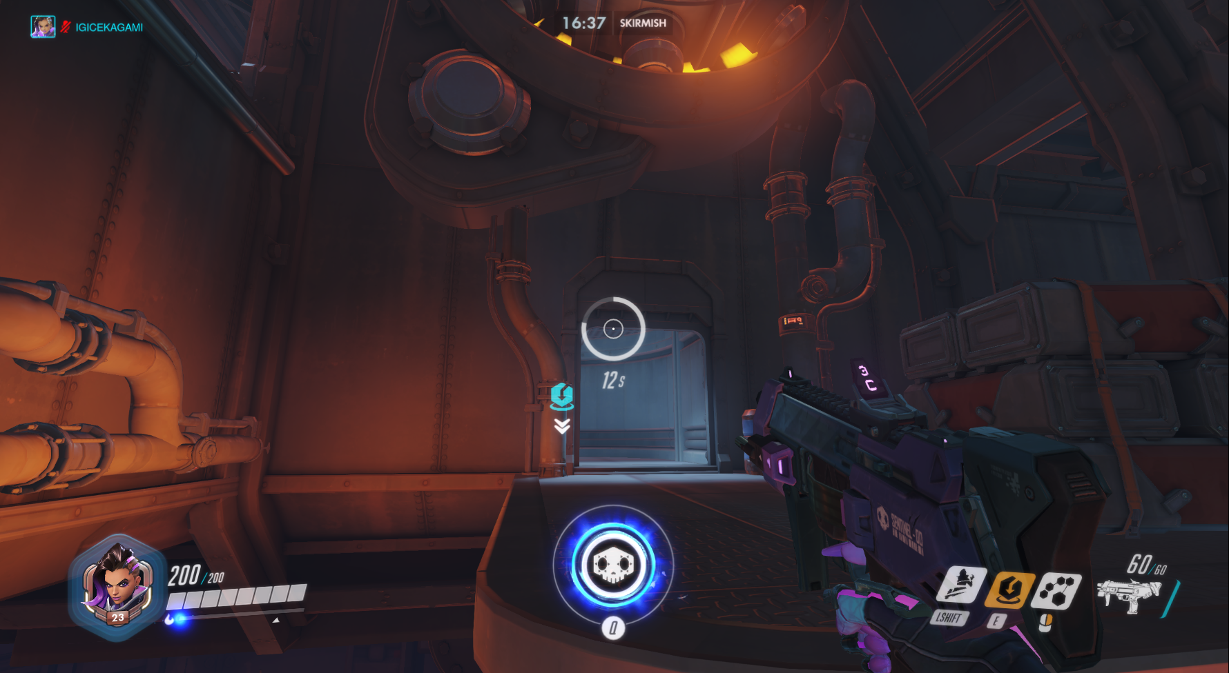 目的:夜市血包较多,且投放地点多种多样,在入侵血包的同事还要注意自身的位置。一些刁钻的位置可以方便sombra保护自己的同时做到足够的骚扰和伤害
