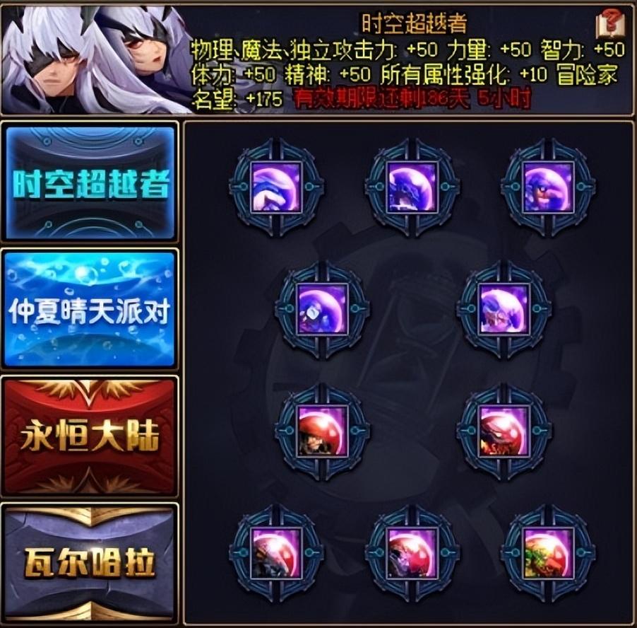 名望值提升:玲珑徽章提升46点;灿烂徽章提升36点;华丽徽章提升30点;本职业白金徽章提升232点,全身共22个普通徽章与2个白金徽章项链栏