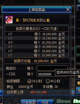 做出来的是强4的,我们来看看拍卖行能卖到多少钱,拍卖行能卖1620w*0.03的手续费=1573w 刚刚我们算的成本是1395w 1573拍卖价-1395成本=178w利润 看完之后你们可以吧荒古记忆碎片利用起来了!绝对的能赚钱!