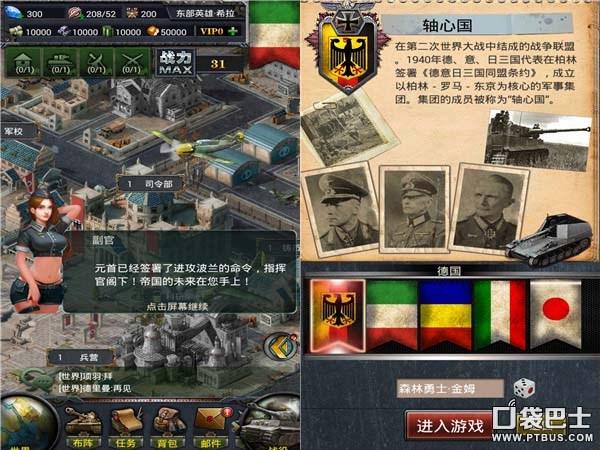虽说叫《红警ol》但是与原作基本上没有任何关系,游戏套用二战背景,玩家可以在轴心国、盟军、共和国之间进行势力选择,抛去政治立场不说小编选择了看似高大上的轴心国,毕竟对于半个军控的人来说虎式坦克的魅力令人难以抵挡。PS:每个阵营都有各自独立的关卡设计和特有作战单位,在这点上可谓是极大的还原了二战的历史。