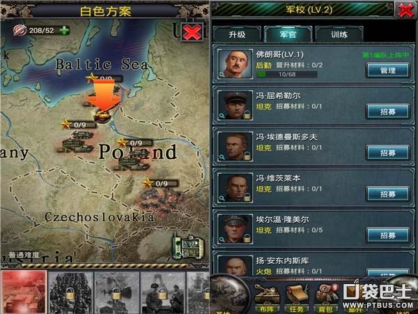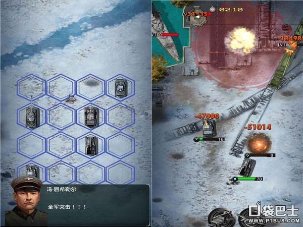 战斗方式相较于旧式手游有了些许进步,虽然依旧是上下卷轴式的场景,但是可出战的单位数量相当庞大,可以展现出集团军大规模作战的气势,玩家依旧不能对作战单位进行精细指向操作,但可以通过下方的支援按钮发动炮击、空袭来辅助进行战斗。这样的设计虽然降低了玩家的操作难度,但是却损失了战略游戏应有的策略性,眼看着被远程炮火点射却止步不前的AI也是令人有些醉了。