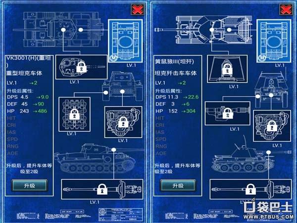 作为一款战略游戏,《红警OL》针对每个阵营都设计了独有的科技树,通过图纸、碎片来升级每一个作战单位的能力数值(类似于RPG游戏中的装备强化),强化界面模仿了工业蓝图非常有设计感。不过被大量的数值所填充,玩起来有些头痛。