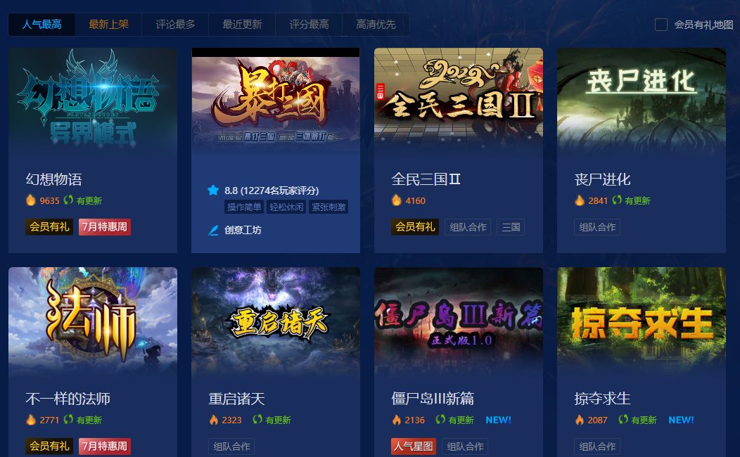 如今距离《魔兽争霸III》上线已有许久,玩RPG从小玩到大的人绝对不止笔者一人,而现在的魔兽RPG依然是一副欣欣向荣的景象,打开魔兽争霸官方对战平台,你不仅可以看到每日、每周、每月的人气推荐地图,你还可以通过大分类中找到自己喜欢的类别,而这还没有结束,魔兽争霸官方对战平台对于每一张地图的标签也进行了细分,组队合作、单机、乱斗、仙侠以及动漫,不论你是哪一类地图的爱好者,都可以在这里找到属于自己的地图。