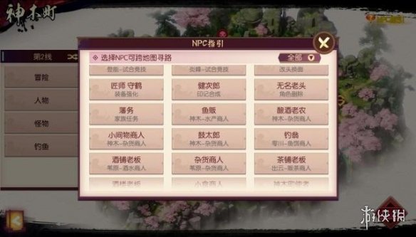 首先,我们来到神木町地图,然后打开地图界面,点击右上角的NPC指引,找到鱼贩,神木—水产商人。点击后自动寻路我们就可以找到这个NPC了