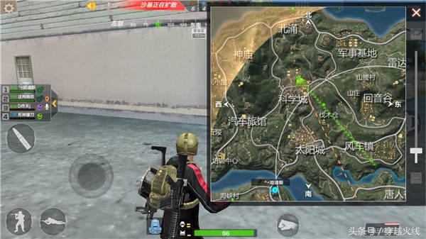 灵狐姐在一次次的尝试中发现,最聪明的打法就是让敌人先相互角逐,自己坐收渔翁之利。所以在这里灵狐姐建议小伙伴们在搜完装备之后不要匆忙就往安全区的内部移动,而是等到沙尘暴快过来的时候再往安全区移动,最好是计算一下自己到安全区边缘的时间,在沙尘暴到达前一秒进安全区那就非常完美了。这样可以最大程度上避免自己的身后还有敌人,因为大部分敌人会在第一时间往安全区的中部去。