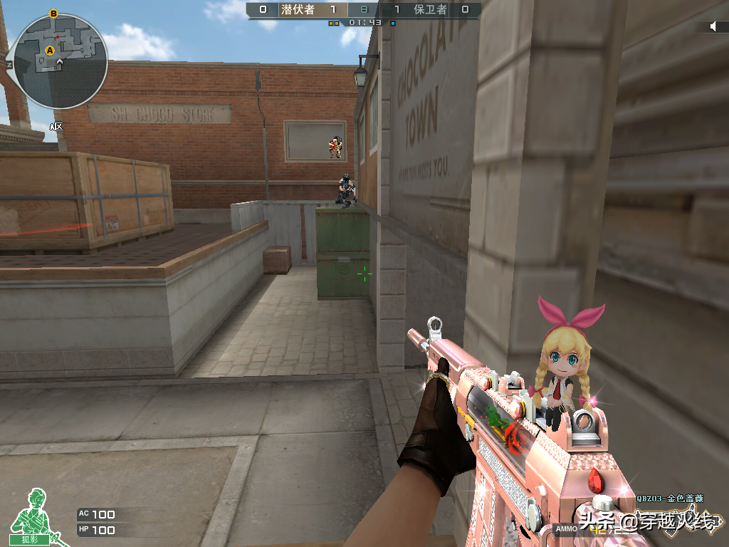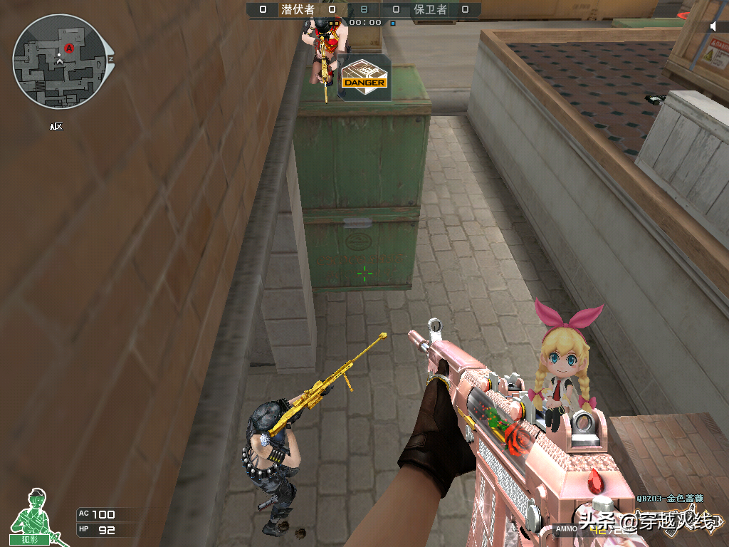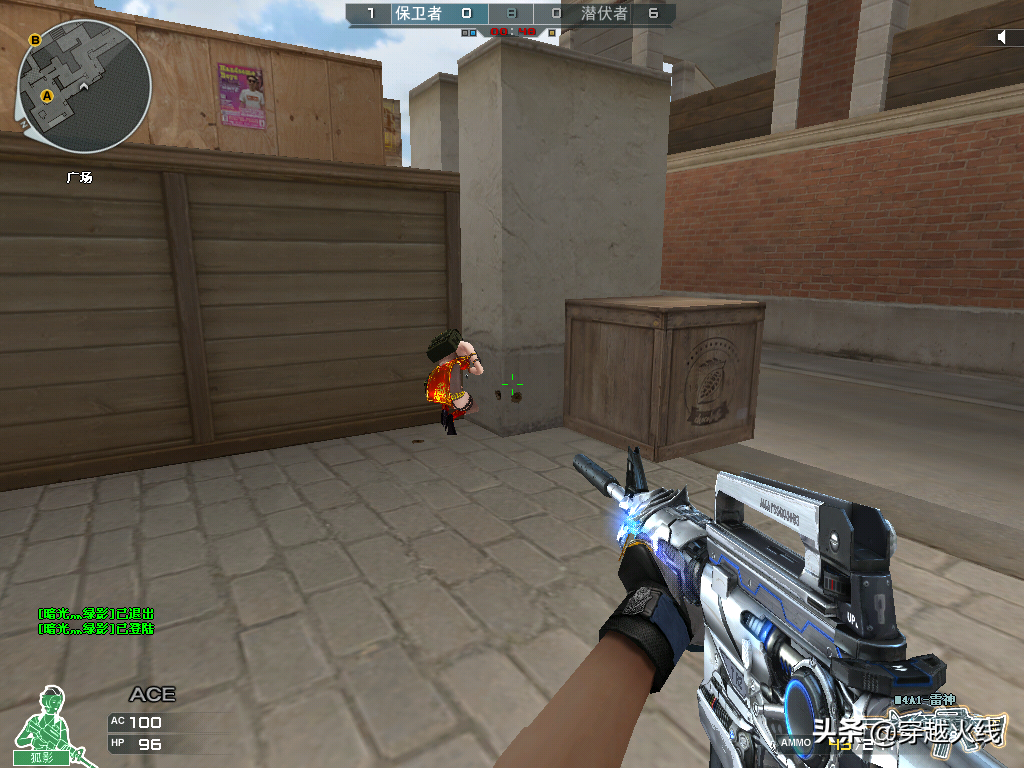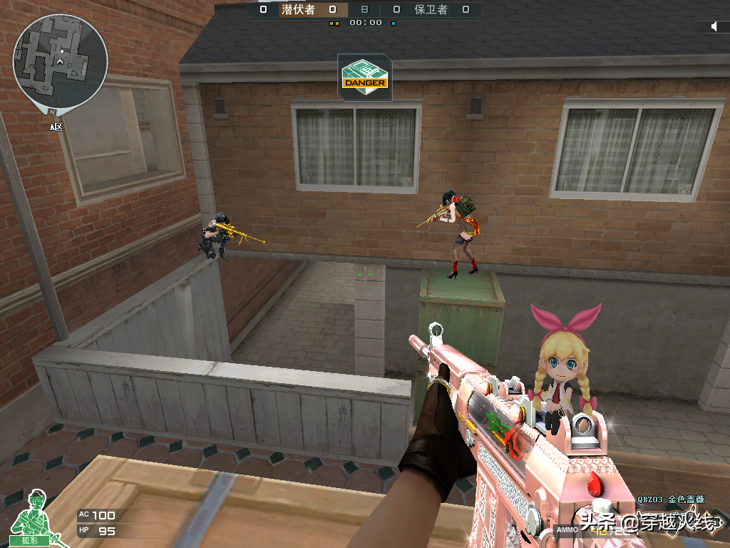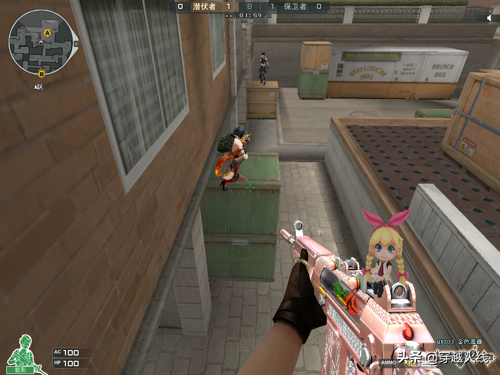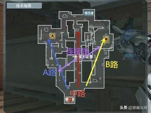 这个站位不管是哪个口进来或者两个口同时进来,都能做到万无一失,当然在A二层小道也是需要防范的,所以站在相比较横栏上的协防,站在窗口上的位置,更能有利于防守,因为这样可以同时防守A小道的敌人来犯。