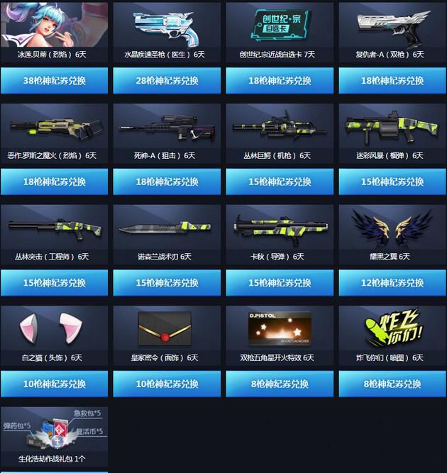 活动期间,老兵可利用累计的枪神纪券兑换兵器库内武器或道具。特别地,每种道具武器仅限兑换1次。活动结束后,枪神纪券数目将清零。