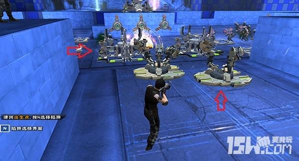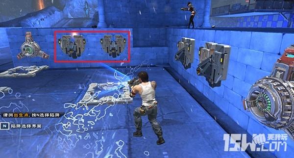 首先我们要将闯关所需的4个陷阱带好:减速、狂风、修理站、自修磁暴塔,没有狂风也没关系,可以带个大炮台。一开始我们先到出怪口哪里铺好减速陷阱,为后面的关卡做好铺垫。