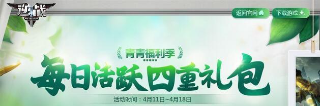 4月每日活跃四重礼包,每日在线玩游戏,还有机会获得超值好礼,玩家在活动期间完成指定任务后,即可登录页面领取期限商城枪械,快和6399小编一起来看看具体的活动内容吧。