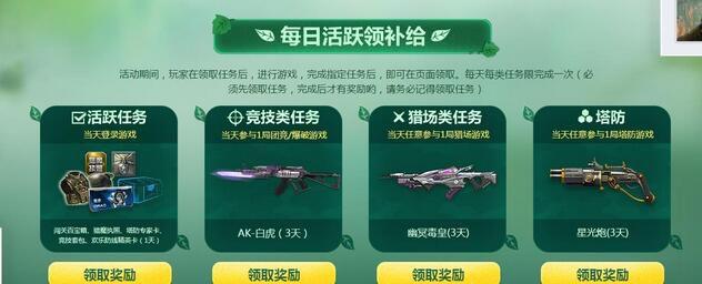 活动期间,玩家在领取任务后,进行游戏,完成指定任务后,即可在页面领取。每天每类任务限完成一次(必须先领取任务,完成后才有奖励,请务必记得领取任务)