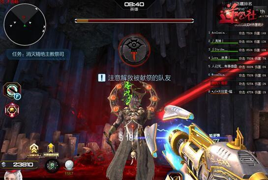 县级技能,boss将会拉去一位玩家到空中进行献祭。被困住的小伙伴们可以通过按键不同搭配来进行挣扎,其余的小伙伴们也可以攻击血量条来进行帮忙,同时boss位于地图中央保持不动,可是一个千载难逢的输出好机会哦。