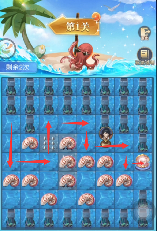 1、深海寻珠第一关需要玩家在规定的步数里拿到珍珠才能通关。