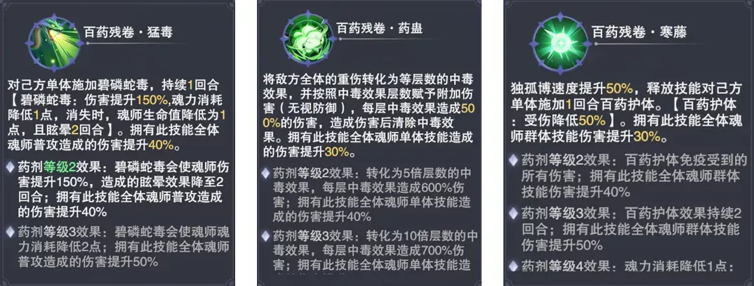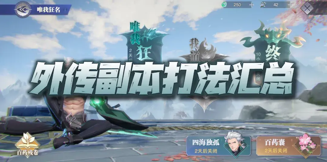 此外这次的外传副本还加入了一个叫做“百药残卷”的功能,其中我们可以去升级3个隶属于友军独孤博的技能,在升级后还能得到不少其它的效果,这些技能都可以作为友军独孤博在协同参战时可自主使用的技能,利用这些技能我们便可更加轻松的通过4个【我道狷狂】副本与最后一天开启的【终章】副本。