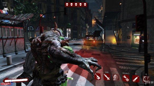 地面和近身武器的沾血效果则是本作的另一个特色。在用刀或者斧头近距离和怪物搏杀的过程中,玩家能近距离的观察到武器在怪物身在刻下的伤痕。而离开战场后,刀身留下的血液则见证了不久前发生过的厮杀。怪物死亡后血液同样会遗留在地面上,一片一片的猩红,随着玩家挺过的波数增加,让场景里仿佛炼狱一般。