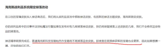 不建议现在开杰作宝箱是因为在之前神话精粹商店的计划中,杰作宝箱也有比较重要的改动,分析一下之前发布的《海克斯宝石和至臻点即将更新》这份公告内容,有一条值得注意,公告中说到“即使是在转换前获取的宝箱也会更新”,这就意味着,在神话精粹商店开启之后,你当前战利品中的宝箱也会随之更新,因此也就意味着,杰作宝箱也将会变成更新之后的规则,可以用来累积“杰作宝箱”阶段任务。