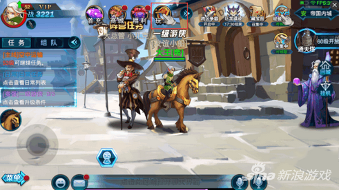 1-60级根据主线任务能很快到达,中间也有个别比较卡等级的地方,无论是卡等级还是主线做完之后都可以去做日常任务,日常任务在60级的时候可以完成的有阵营任务,组队BOSS,跨区争霸,资源采集,日常任务拥有大量经验是每日必不可少的。日常任务一般都是11点开始,最好建议大家在经验双倍的时候做。日常任务位置位于主界面上方-玩法列表里。