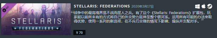 扩充后的联邦:玩家能使用经过扩充的外交能力,建立联邦的内部凝聚力,并为所有成员解锁威力惊人的奖励。不论您是加入贸易联盟 (Trade League)、军事联盟 (Martial Alliance) 或是霸权 (Hegemony),这些组织的成员资格都可能对您极度有利。