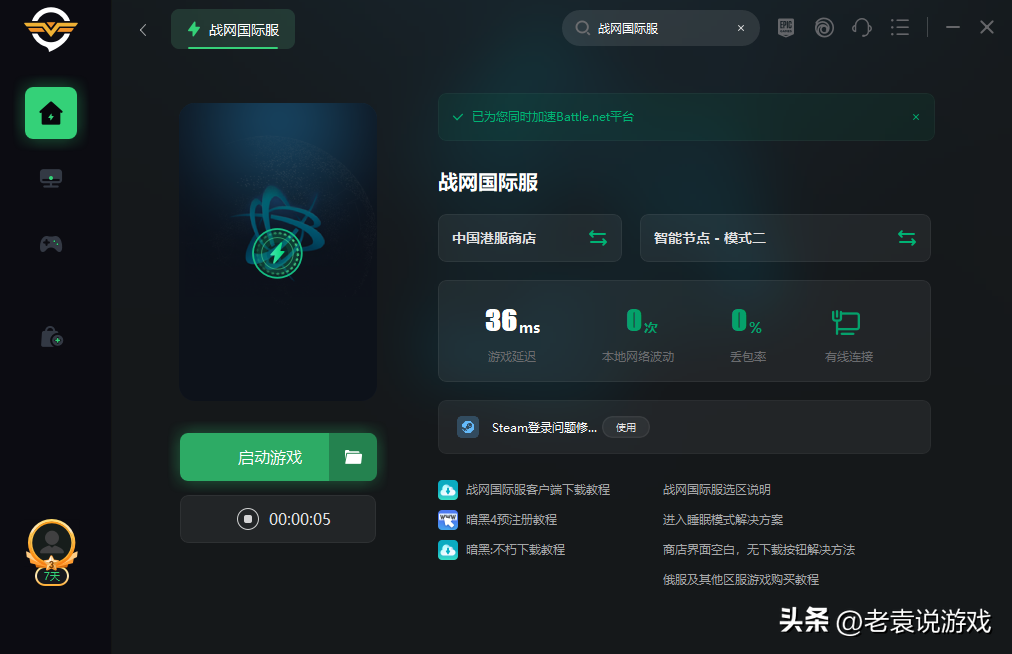 还有一种可能是网络因素导致的,我们可以打开奇游加速,然后加速后就可以正常的进入战网了。小编就是通过这个办法来解决的,同时战网后面下载游戏也是满速下载的一个效果。