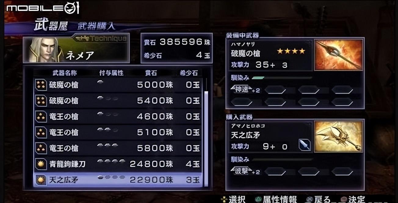 正因如此,所以大蛇系列的战术核心一直都是如何让角色充分发挥武器的多重属性效果,大蛇2当然也是这样的玩法,而且因为商店系统的加入让武器收集更加方便了。
